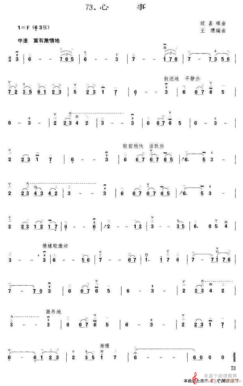 曲谱图网为您提供心事(心事钢琴吉他二胡独奏版)找谱子,就上曲谱图网。