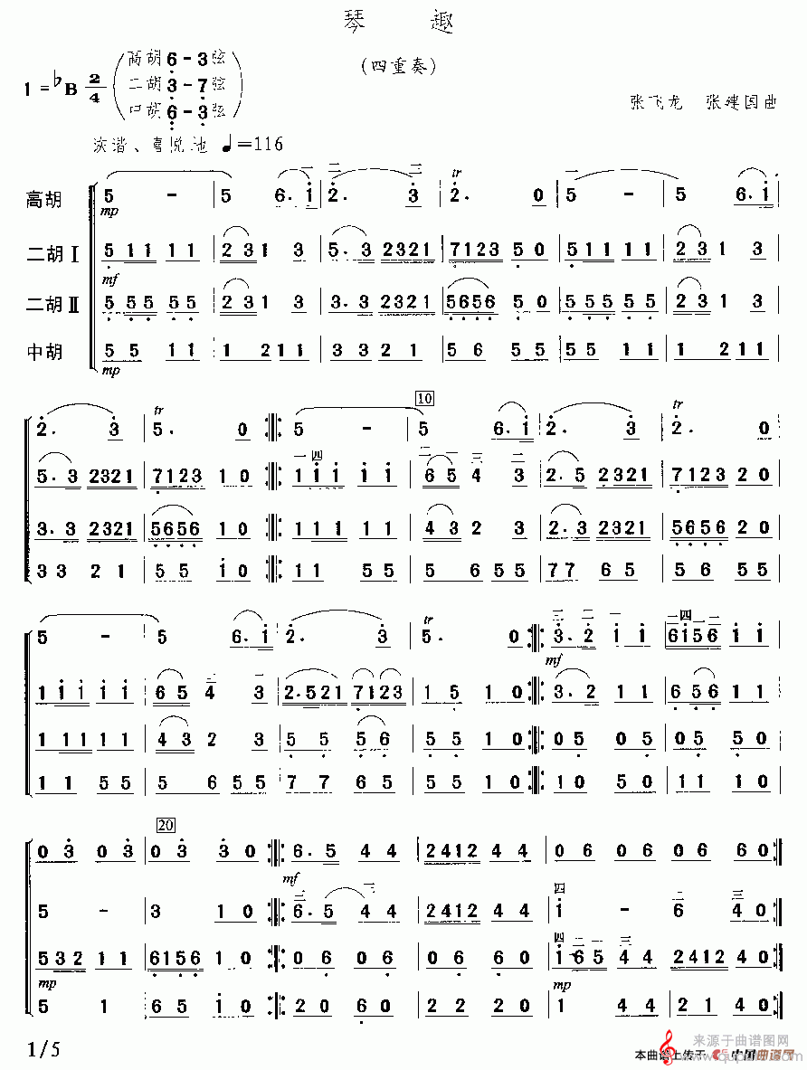 曲谱图网为您提供琴趣简谱(琴趣二胡四重奏版)找谱子,就上曲谱图网。