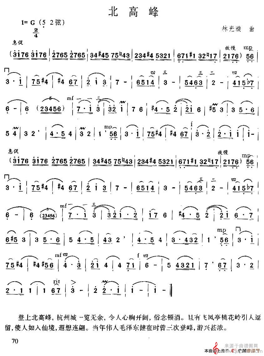 曲谱图网为您提供北高峰(北高峰胡琴乐器演奏曲简谱)找谱子,就上曲谱图网。