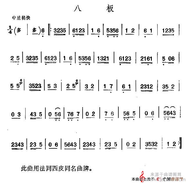 曲谱图网为您提供京剧二黄曲牌:八板简谱(京剧二黄曲牌:八板二胡演奏版)找谱子,就上曲谱图网。