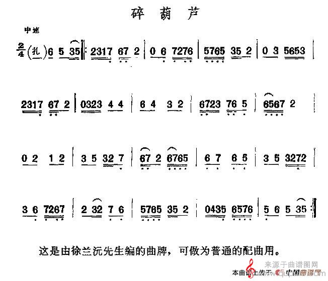 曲谱图网为您提供京剧二黄曲牌:碎葫芦(京剧二黄曲牌:碎葫芦二胡演奏歌曲简谱)找谱子,就上曲谱图网。