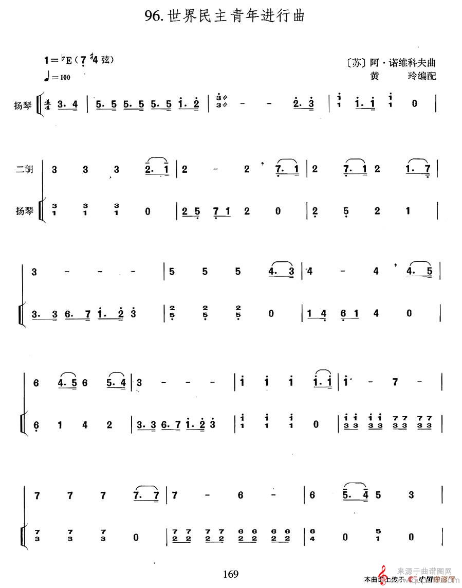 世界民主青年进行曲(世界民主青年进行曲胡琴乐器伴奏歌曲曲谱)