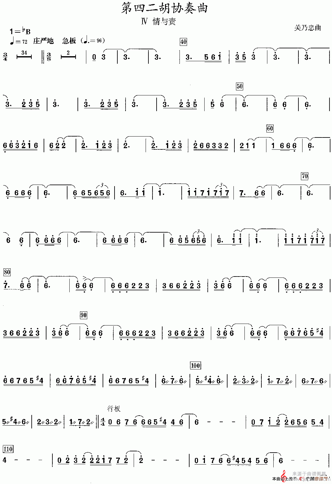 曲谱图网为您提供第四二胡协奏曲:4、情与责(情与责二胡协奏曲简谱)找谱子,就上曲谱图网。