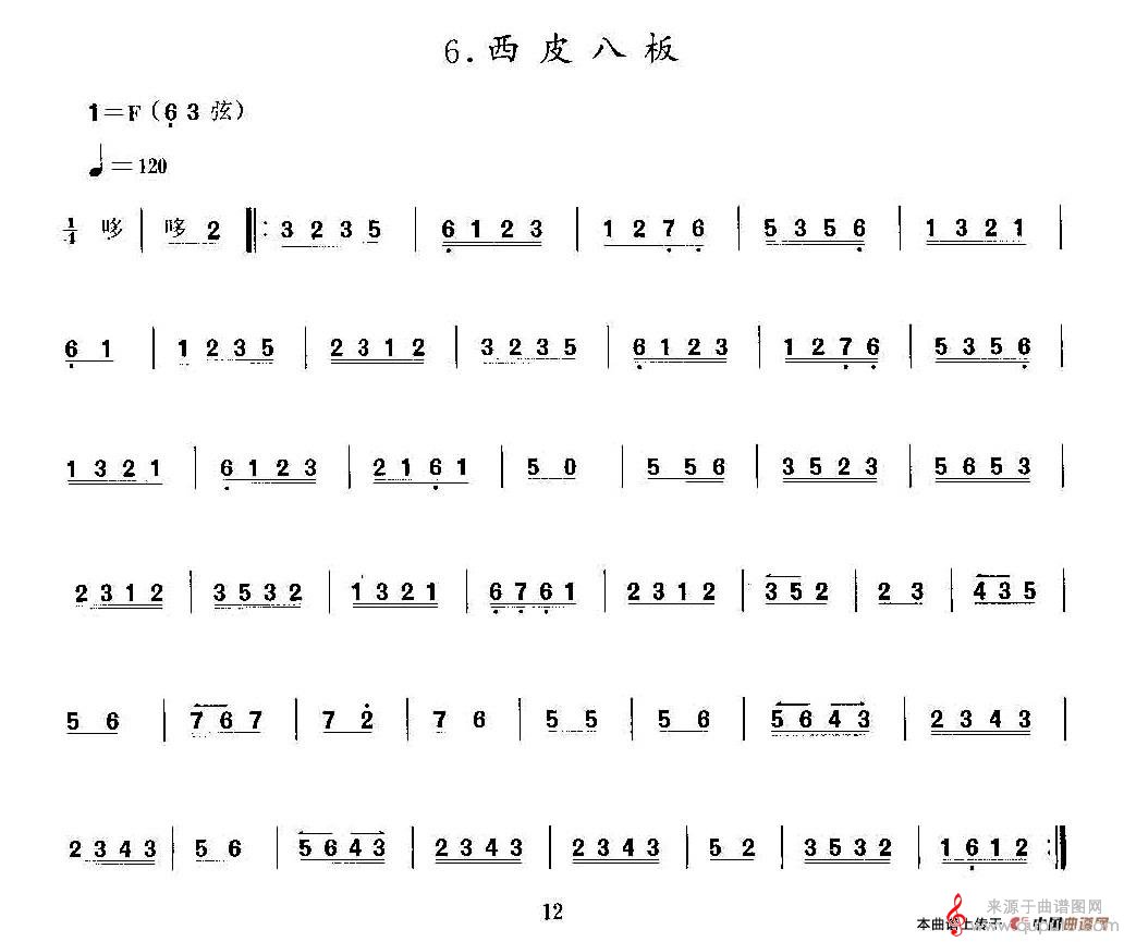 曲谱图网为您提供西皮八板简谱(西皮八板京胡乐器演奏歌曲版)找谱子,就上曲谱图网。
