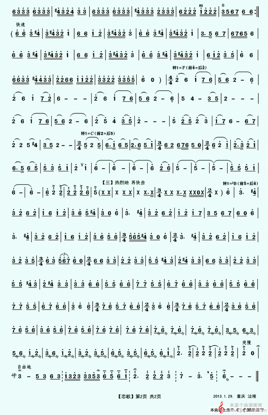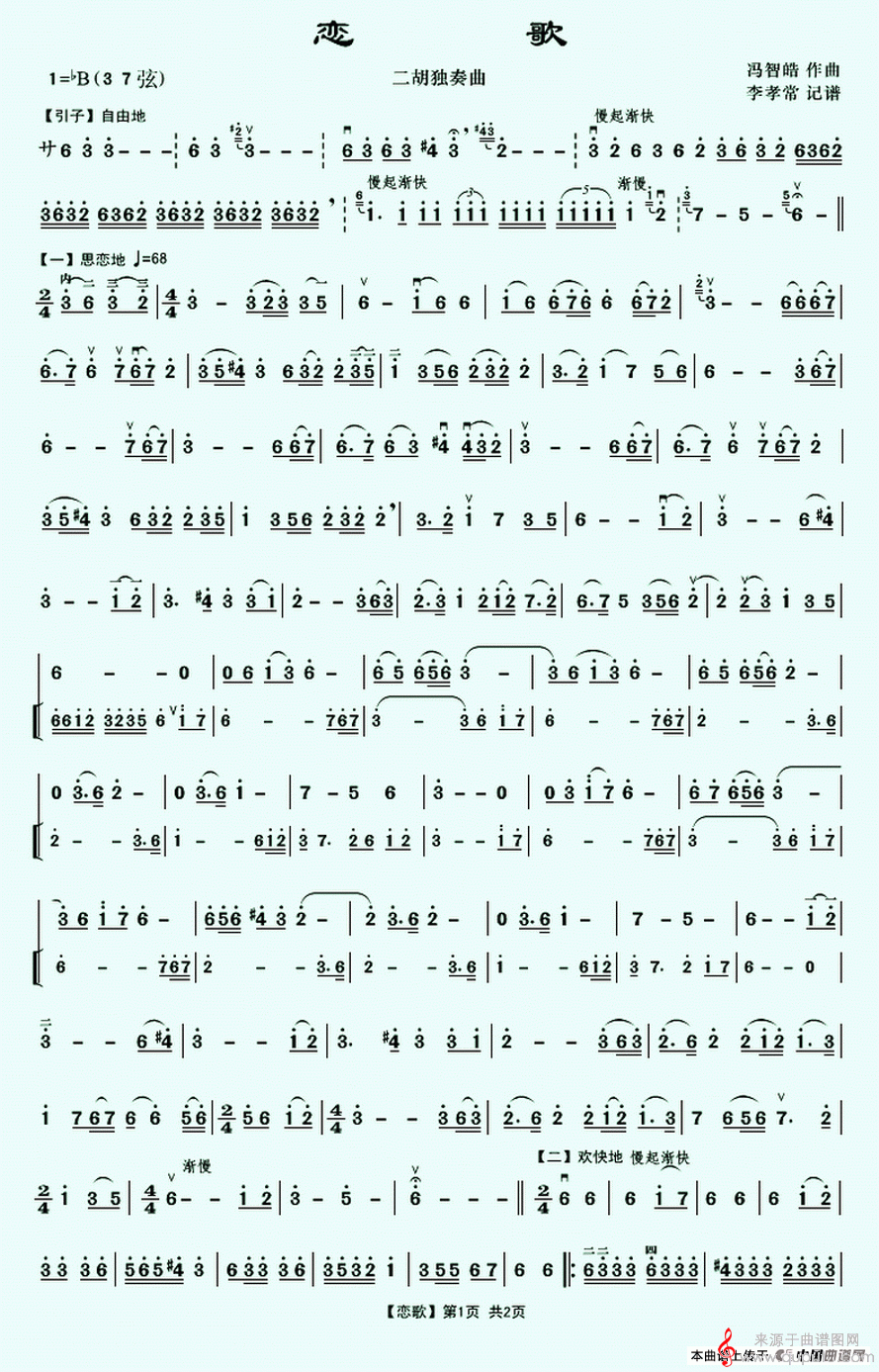 曲谱图网为您提供恋歌简谱(恋歌二胡独奏曲曲谱)找谱子,就上曲谱图网。