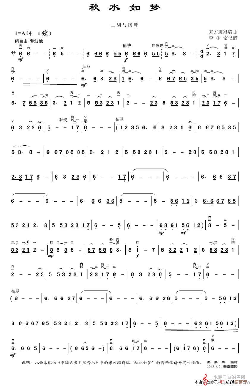 秋水如梦简谱(秋水如梦二胡扬琴演奏歌曲简谱)