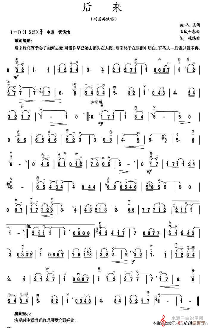 曲谱图网为您提供后来简谱(后来长笛胡琴乐曲演奏歌曲版简谱)找谱子,就上曲谱图网。