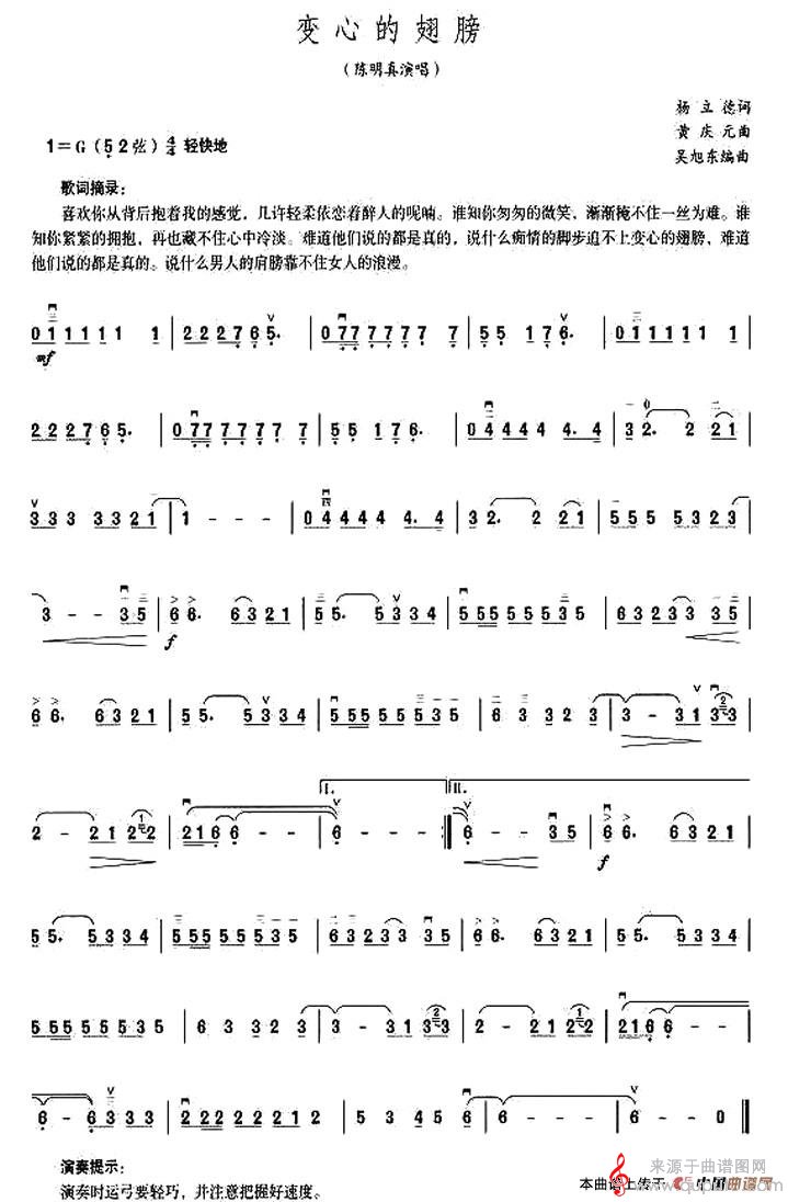 曲谱图网为您提供变心的翅膀(变心的翅膀扬琴演奏歌曲曲谱)找谱子,就上曲谱图网。