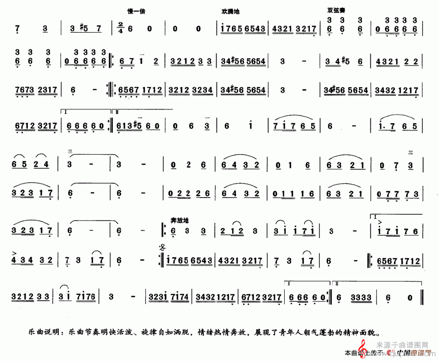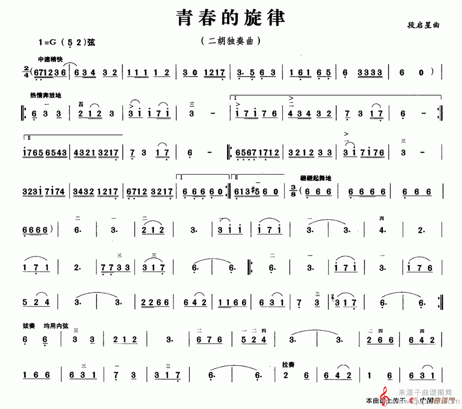 曲谱图网为您提供胡琴谱青春的旋律(简谱曲谱歌词歌曲)找谱子,就上曲谱图网。