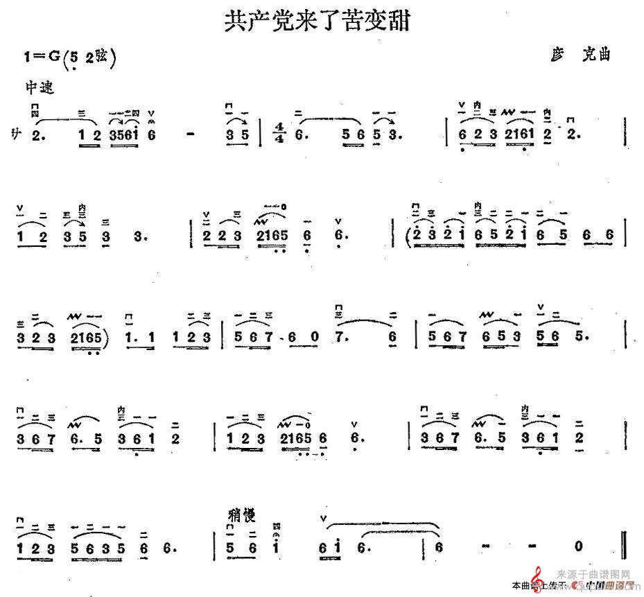 曲谱图网为您提供共产党来了苦变甜(红色歌曲共产党来了苦变甜简谱)找谱子,就上曲谱图网。