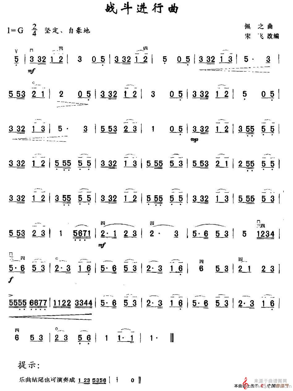 曲谱图网为您提供战斗进行曲(战斗进行曲歌词简谱教学宋飞改编)找谱子,就上曲谱图网。