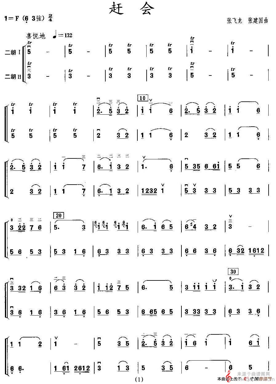 曲谱图网为您提供赶会(二胡二重奏原创胡琴谱曲)找谱子,就上曲谱图网。