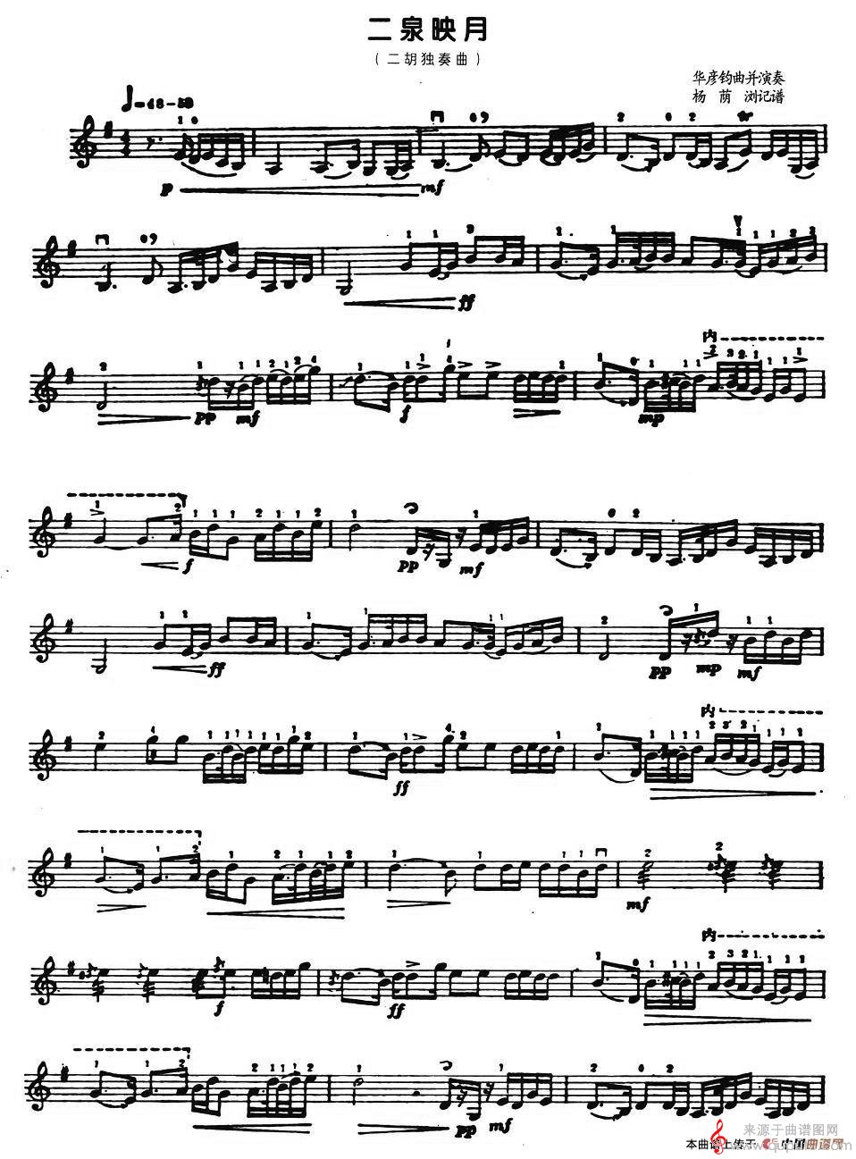 曲谱图网为您提供二泉映月(二胡独奏、五线谱版杨荫浏记谱)找谱子,就上曲谱图网。