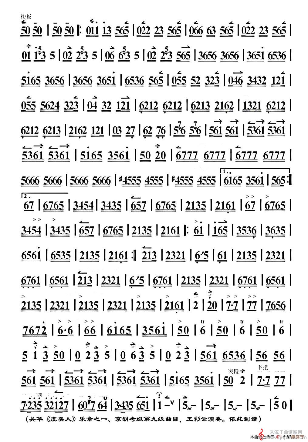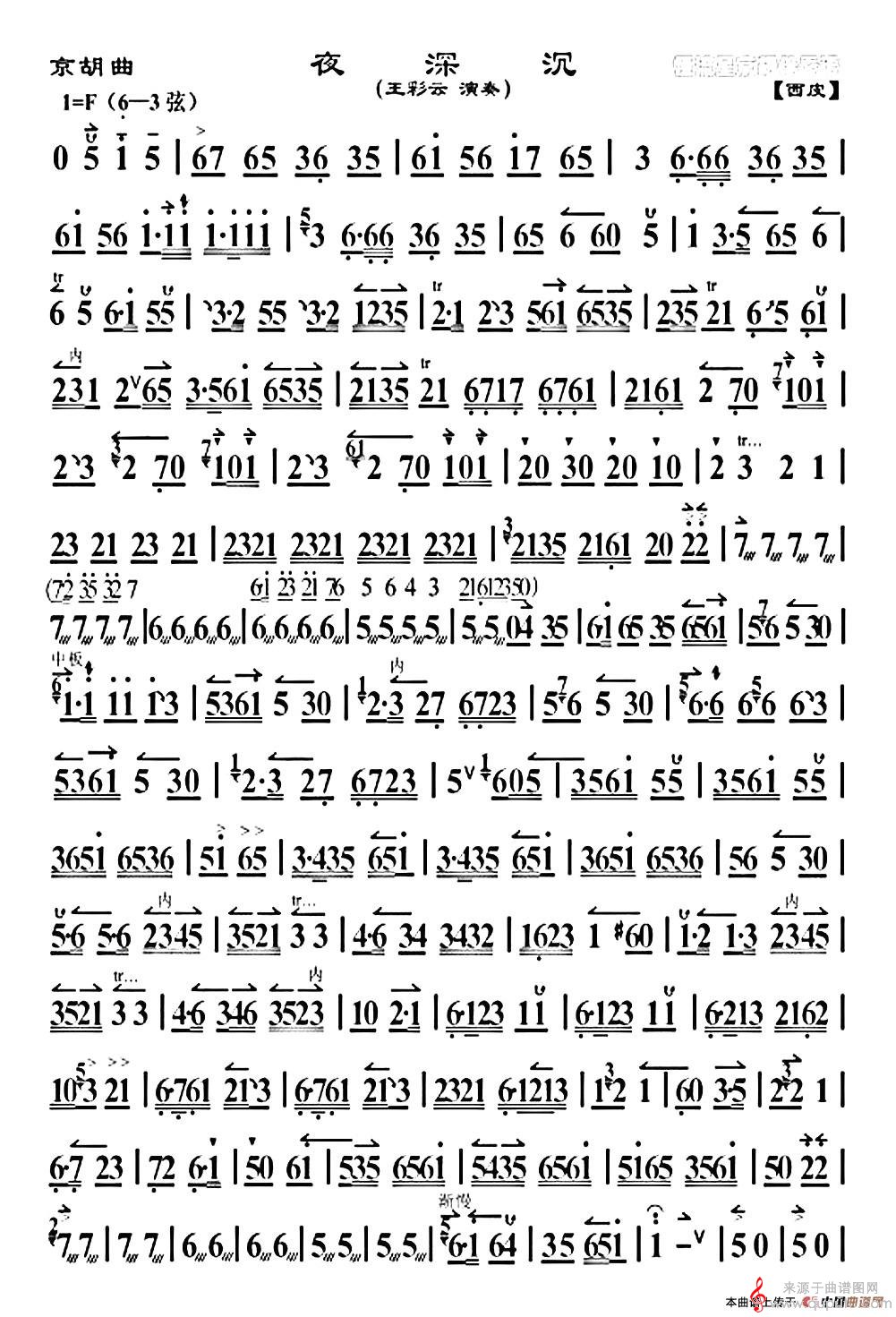 曲谱图网为您提供夜深沉(王彩云演奏版、京胡曲歌词歌谱)找谱子,就上曲谱图网。