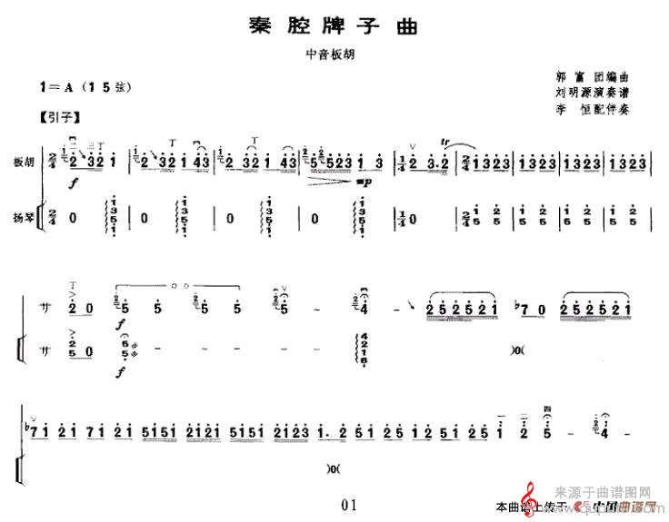 曲谱图网为您提供秦腔牌子曲(中音板胡+扬琴伴奏简谱曲谱)找谱子,就上曲谱图网。
