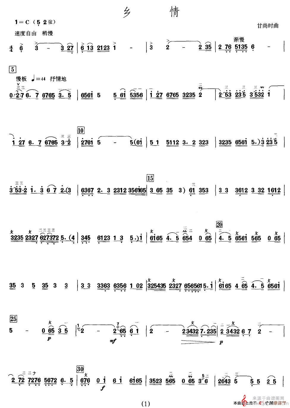 曲谱图网为您提供乡情(高胡简谱教学)找谱子,就上曲谱图网。