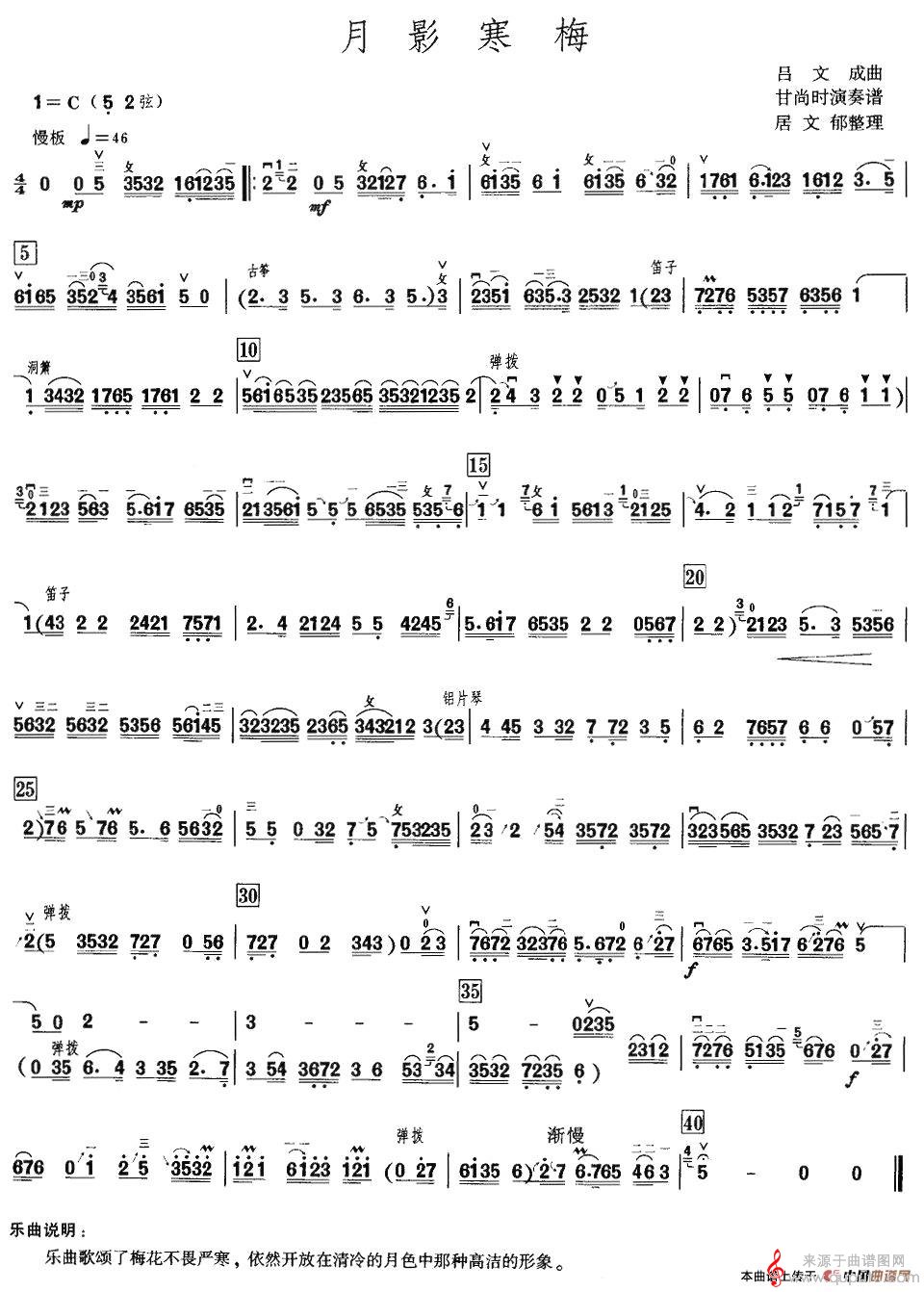曲谱图网为您提供月影寒梅(高胡居文郁整理简谱曲谱)找谱子,就上曲谱图网。