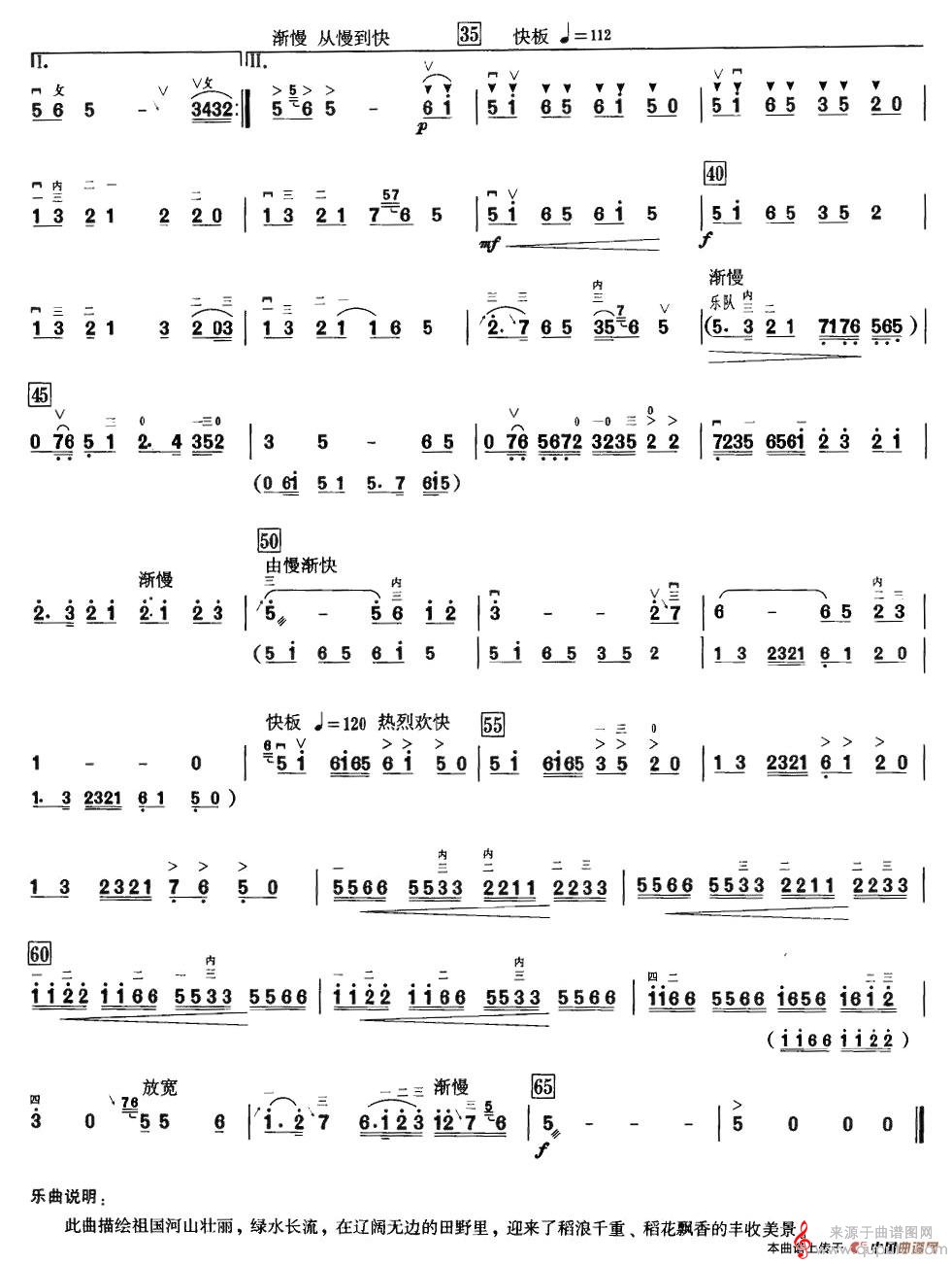 绿水长流稻花香(高胡曲简谱)