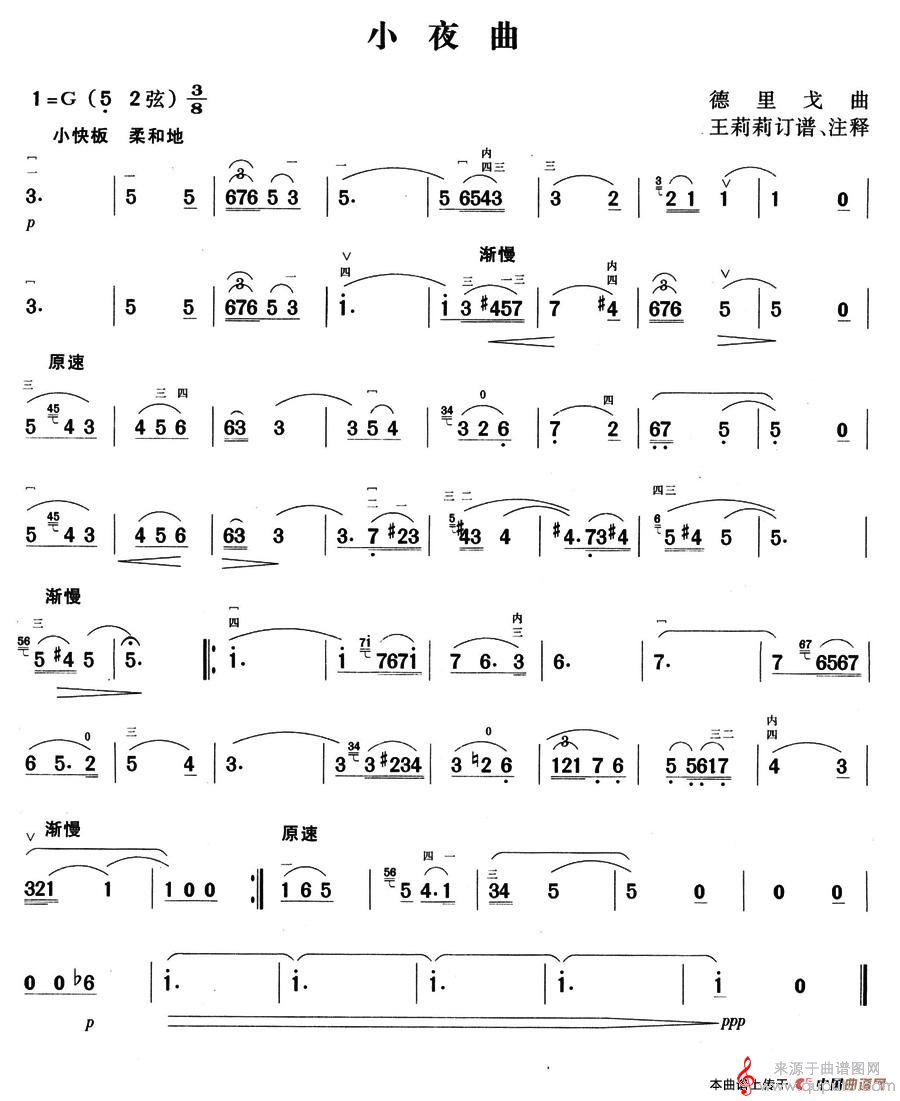 曲谱图网为您提供小夜曲(德里戈作曲版胡琴谱)找谱子,就上曲谱图网。