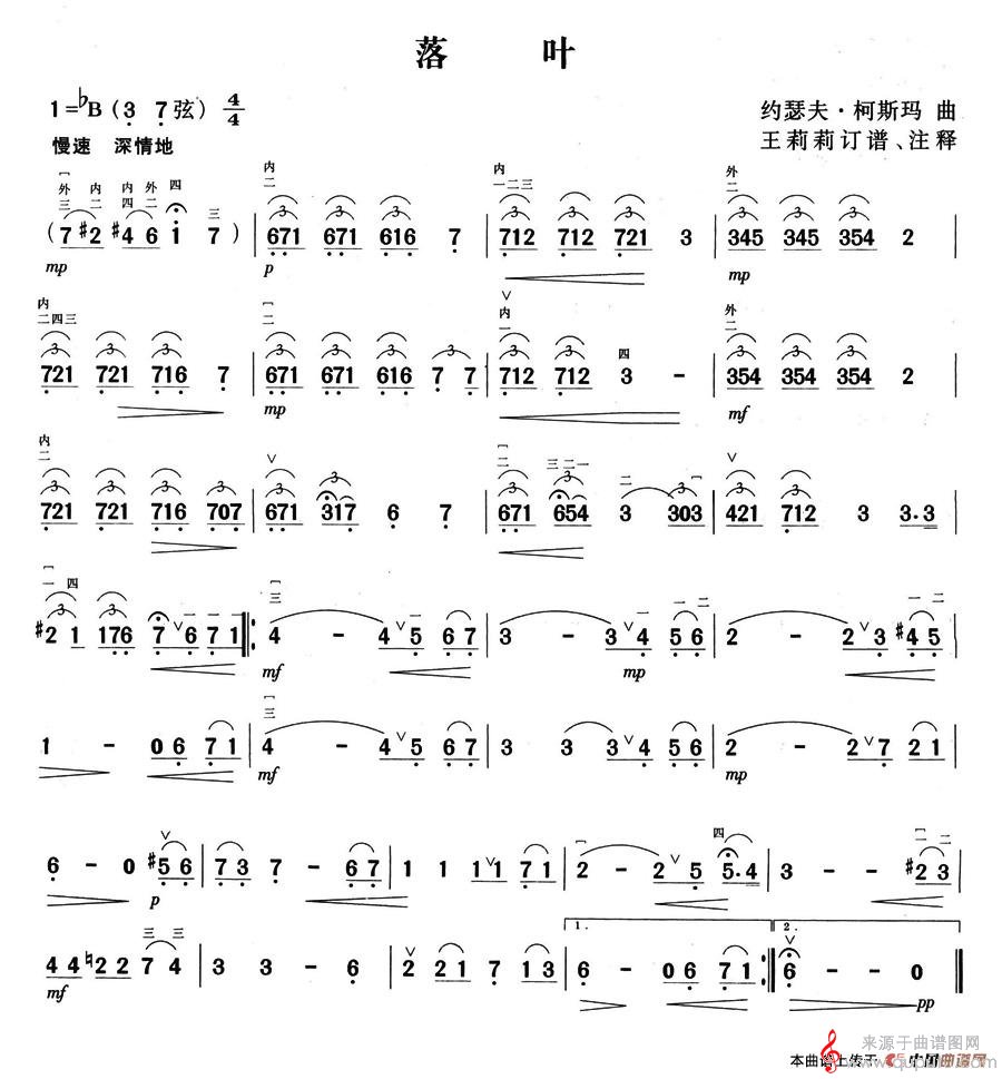 曲谱图网为您提供落叶(落叶简谱曲谱教学)找谱子,就上曲谱图网。
