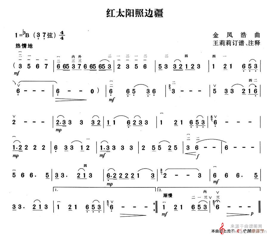红太阳照边疆(红太阳照边疆简谱曲谱)