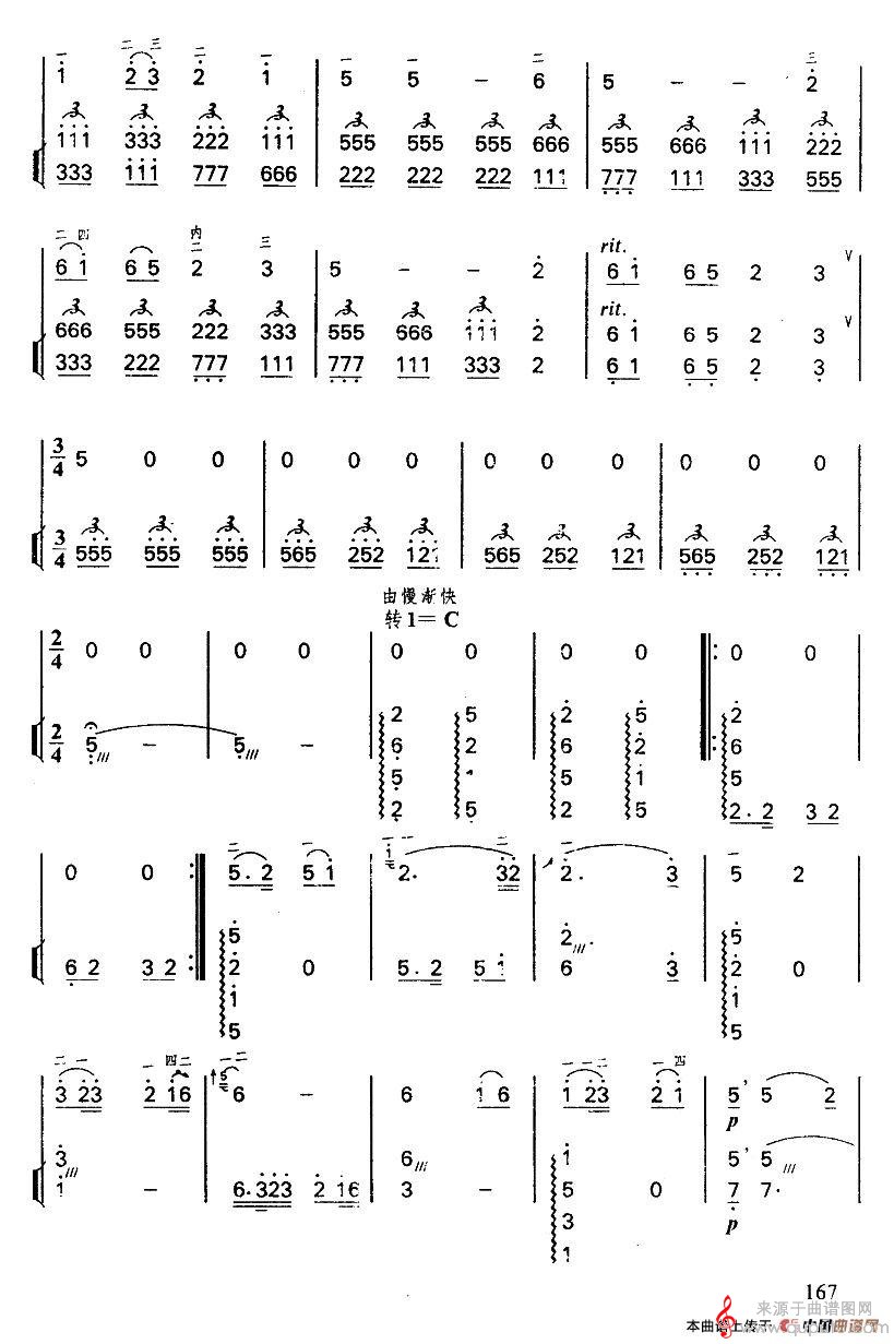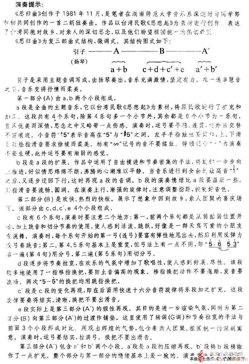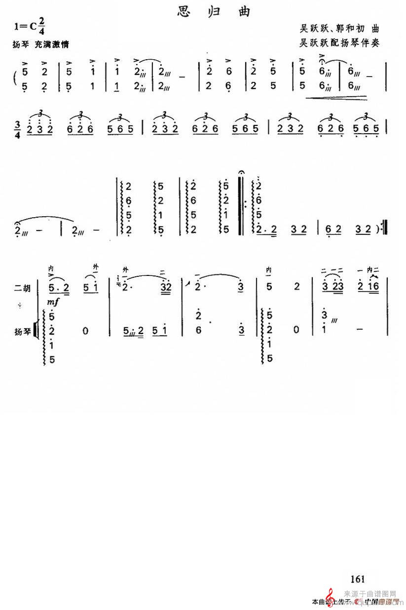 思归曲(扬琴伴奏谱简谱曲谱)