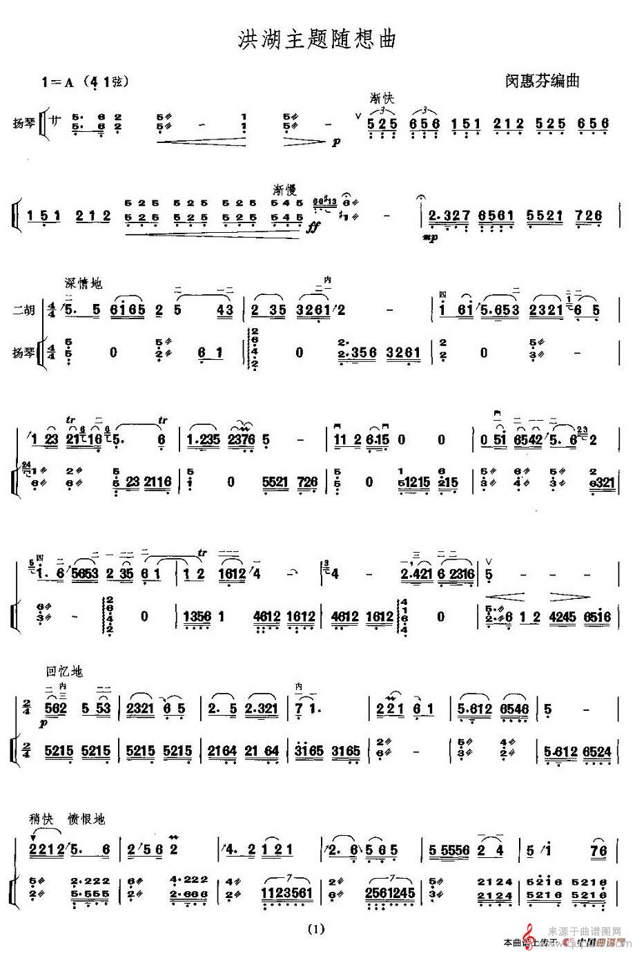 曲谱图网为您提供洪湖主题随想曲(扬琴伴奏谱简谱)找谱子,就上曲谱图网。