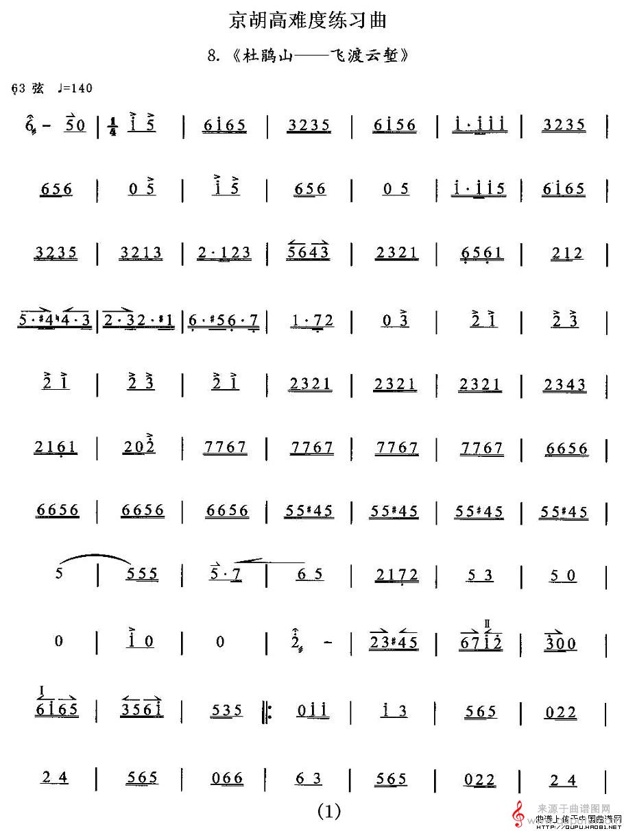 曲谱图网为您提供京胡高难度练习曲8、《杜鹃山——飞渡云堑》简谱找谱子,就上曲谱图网。