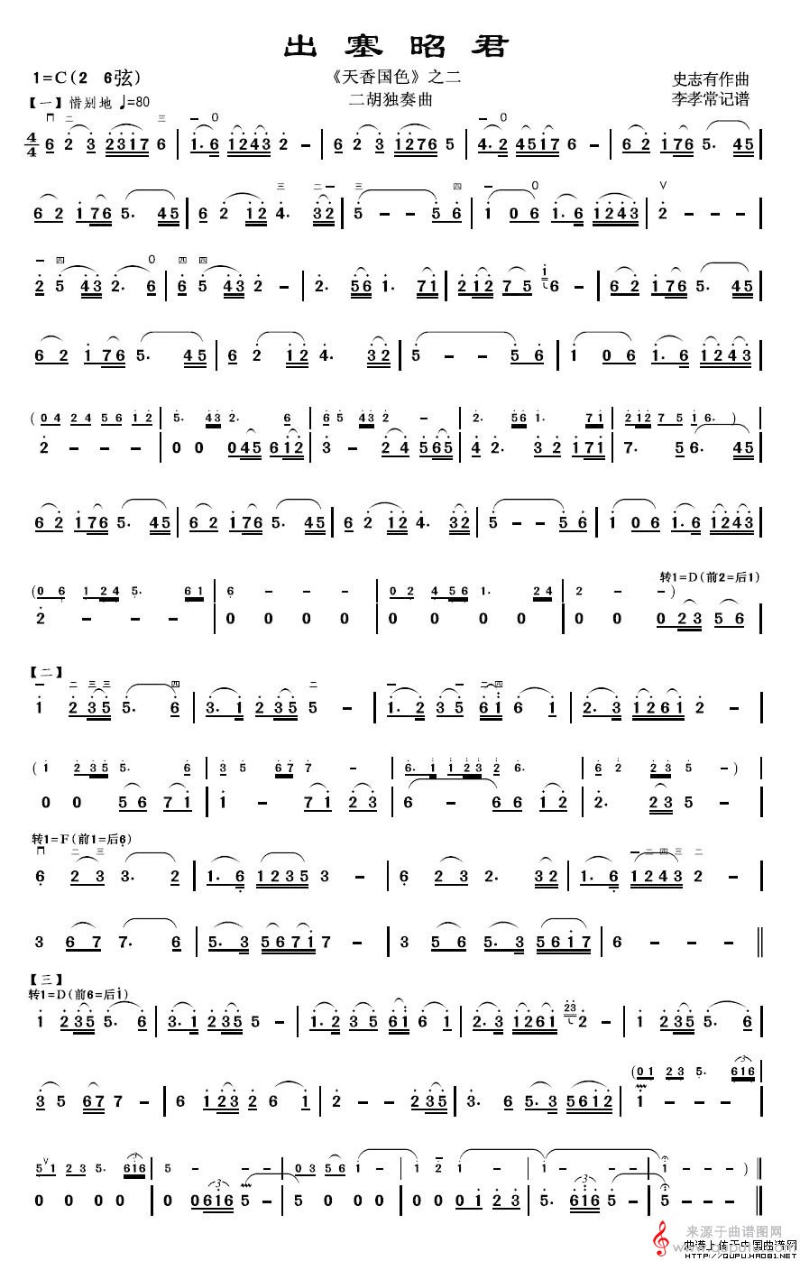 曲谱图网为您提供出塞昭君(二胡独奏曲出赛昭君《天香国色》之二)找谱子,就上曲谱图网。