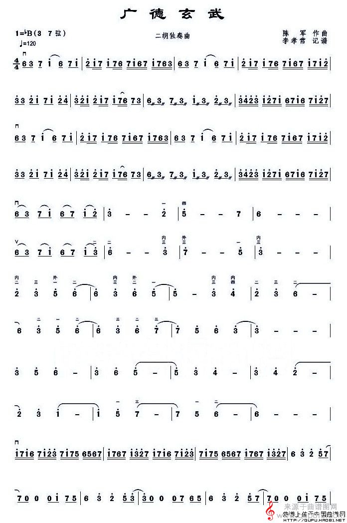 曲谱图网为您提供广德玄武(二胡独奏曲广德玄武简谱曲谱)找谱子,就上曲谱图网。