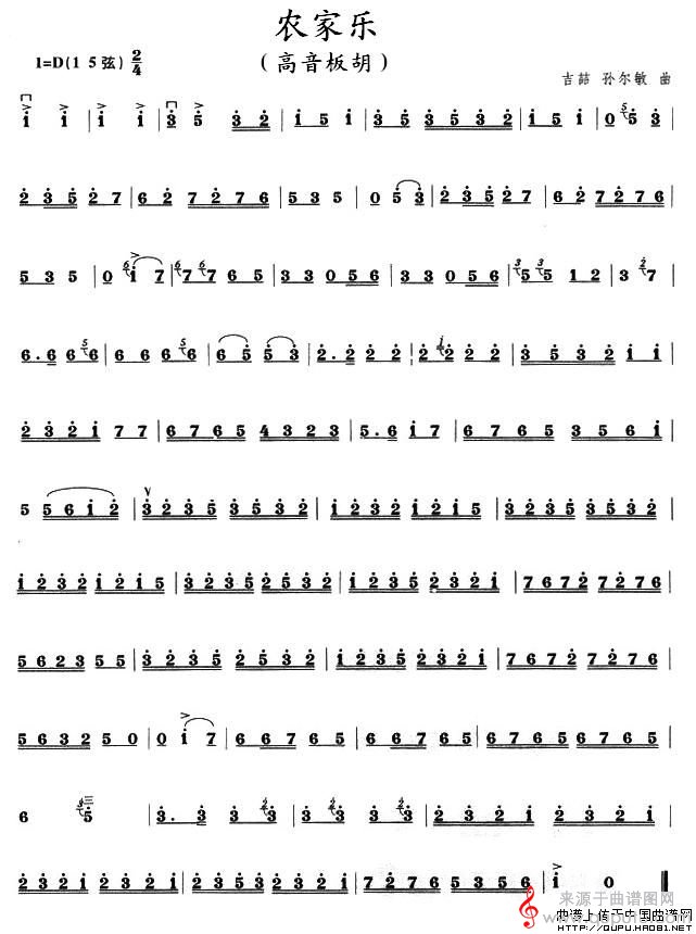 曲谱图网为您提供农家乐(高音板胡简谱曲谱)找谱子,就上曲谱图网。