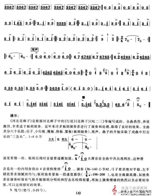 曲谱图网为您提供河北花梆子(民乐队伴奏河北花梆子板胡谱简谱)找谱子,就上曲谱图网。