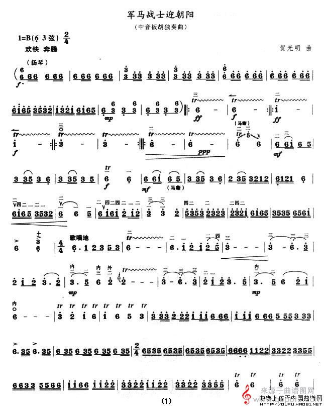 曲谱图网为您提供军马战士迎朝阳(中音板胡独奏曲简谱)找谱子,就上曲谱图网。