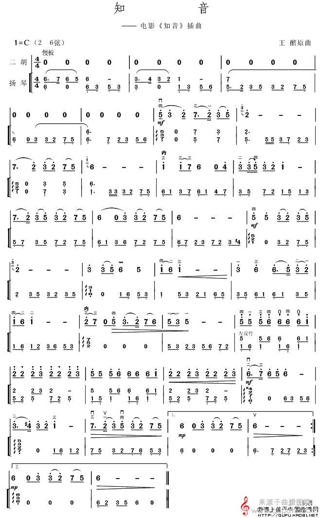 曲谱图网为您提供知音(同名电影插曲)(扬琴伴奏谱简谱)找谱子,就上曲谱图网。