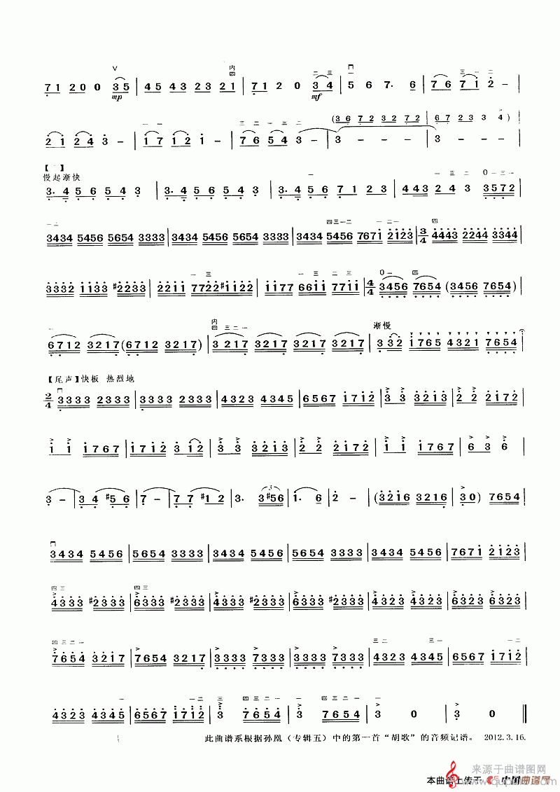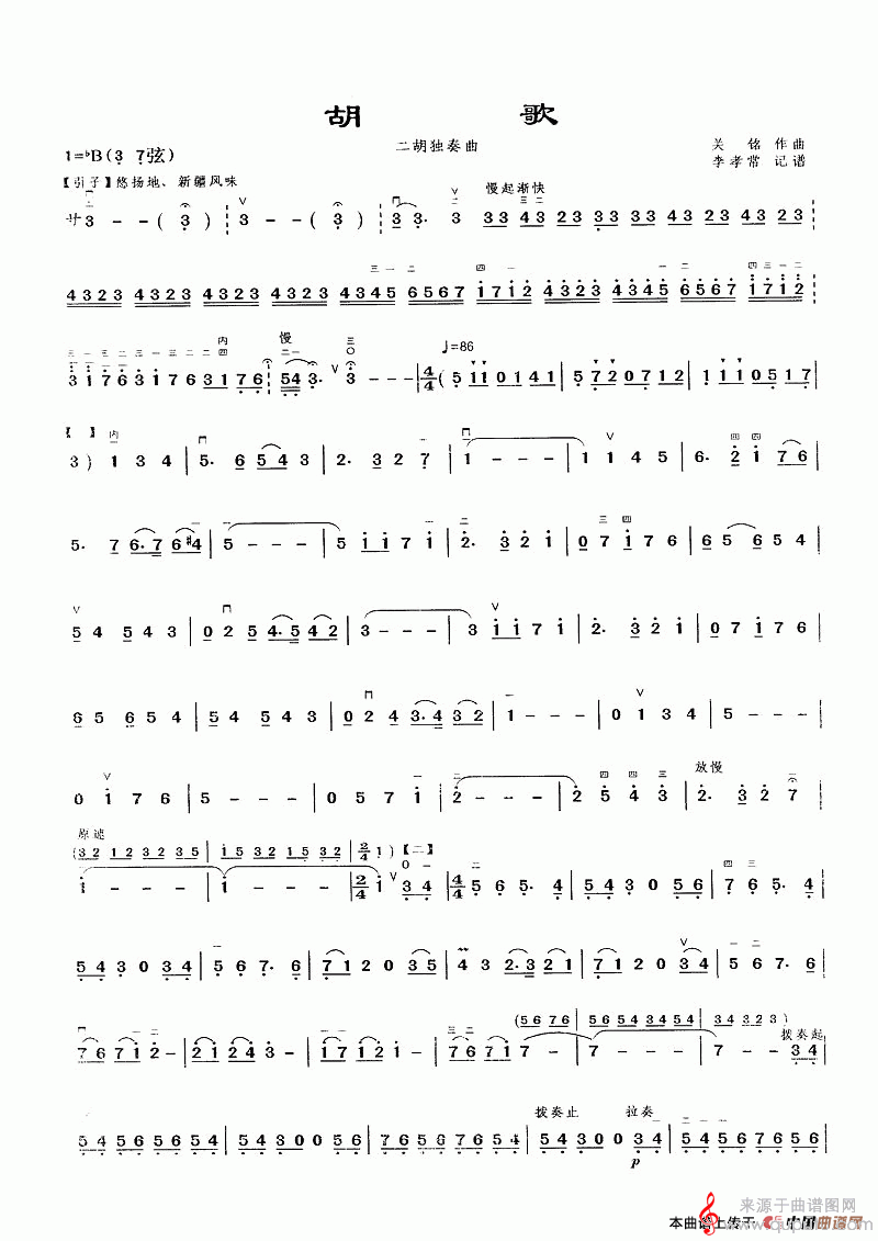 曲谱图网为您提供胡歌(二胡独奏曲胡歌简谱曲谱)找谱子,就上曲谱图网。