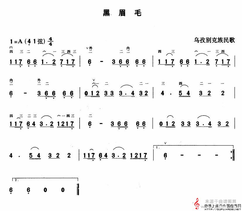 黑眉毛(乌孜别克族民歌黑眉毛简谱)