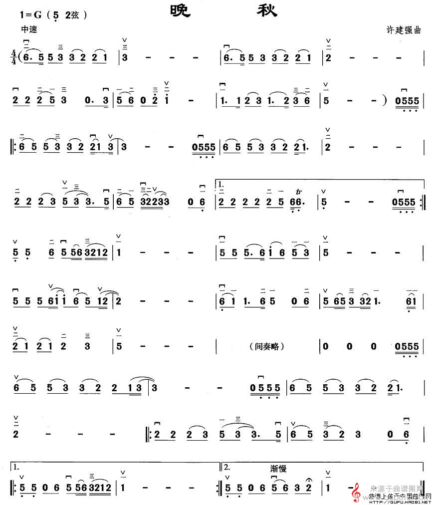 晚秋(晚秋简谱胡琴谱教学)
