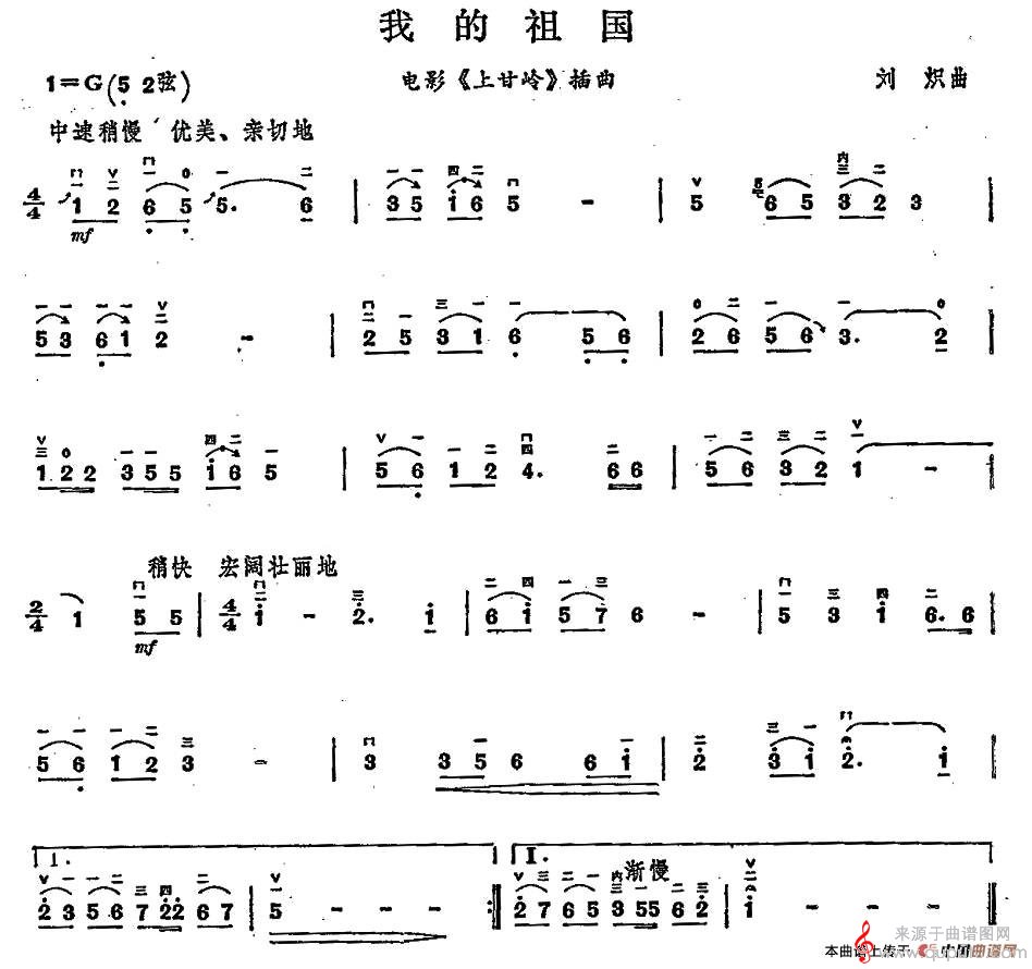 曲谱图网为您提供我的祖国(我的祖国胡琴谱简谱教学)找谱子,就上曲谱图网。