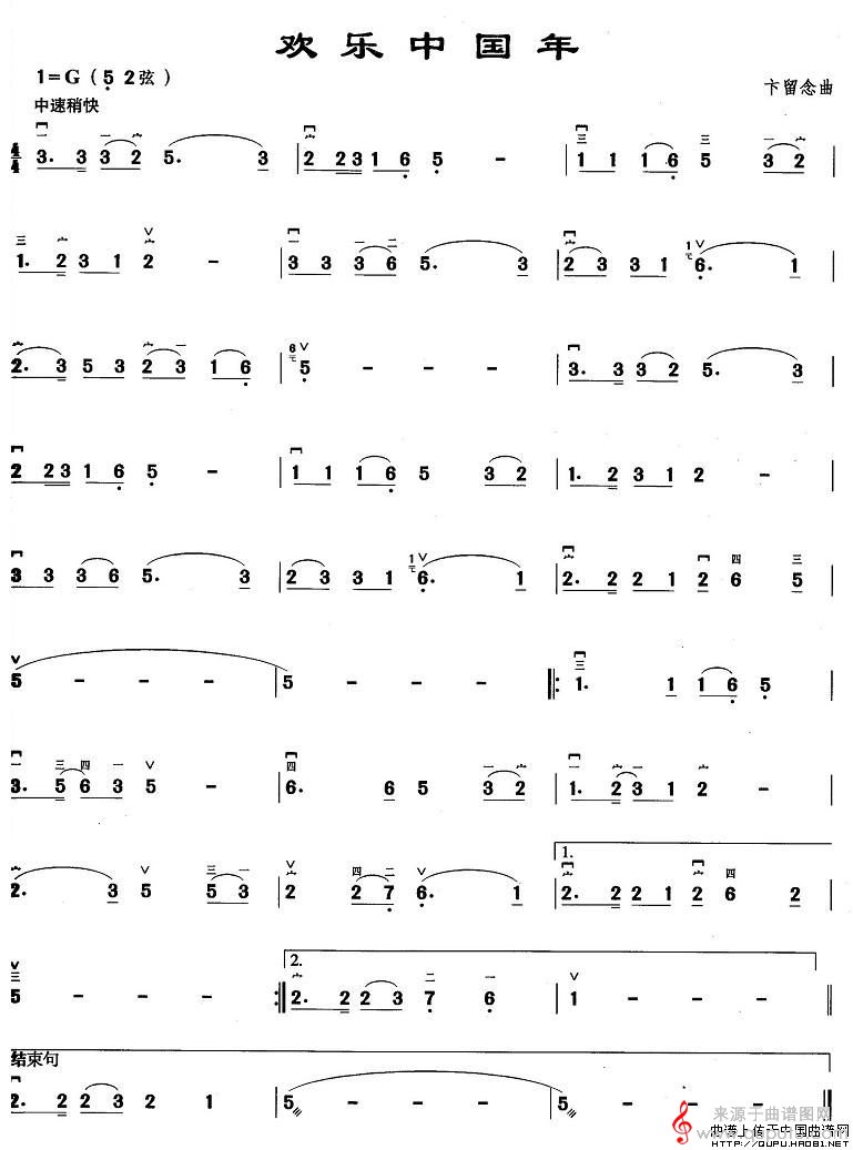 曲谱图网为您提供欢乐中国年(欢乐中国年歌词歌曲胡琴谱)找谱子,就上曲谱图网。