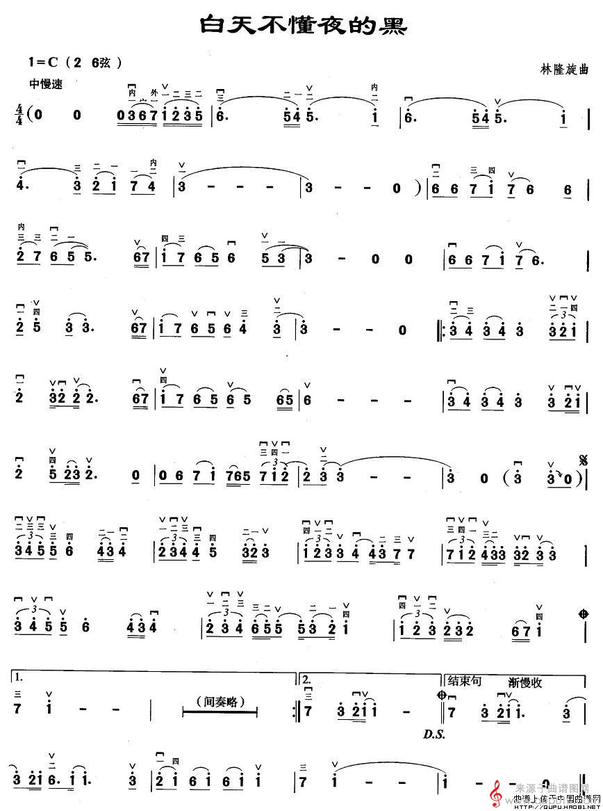 曲谱图网为您提供白天不懂夜的黑(白天不懂夜的黑简谱曲谱胡琴谱)找谱子,就上曲谱图网。