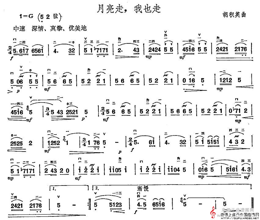 月亮走,我也走(月亮走,我也走胡积英作曲版胡琴谱)