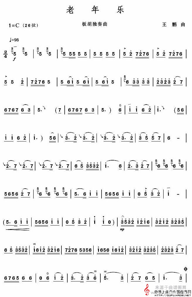 曲谱图网为您提供老年乐(板胡独奏曲简谱)找谱子,就上曲谱图网。