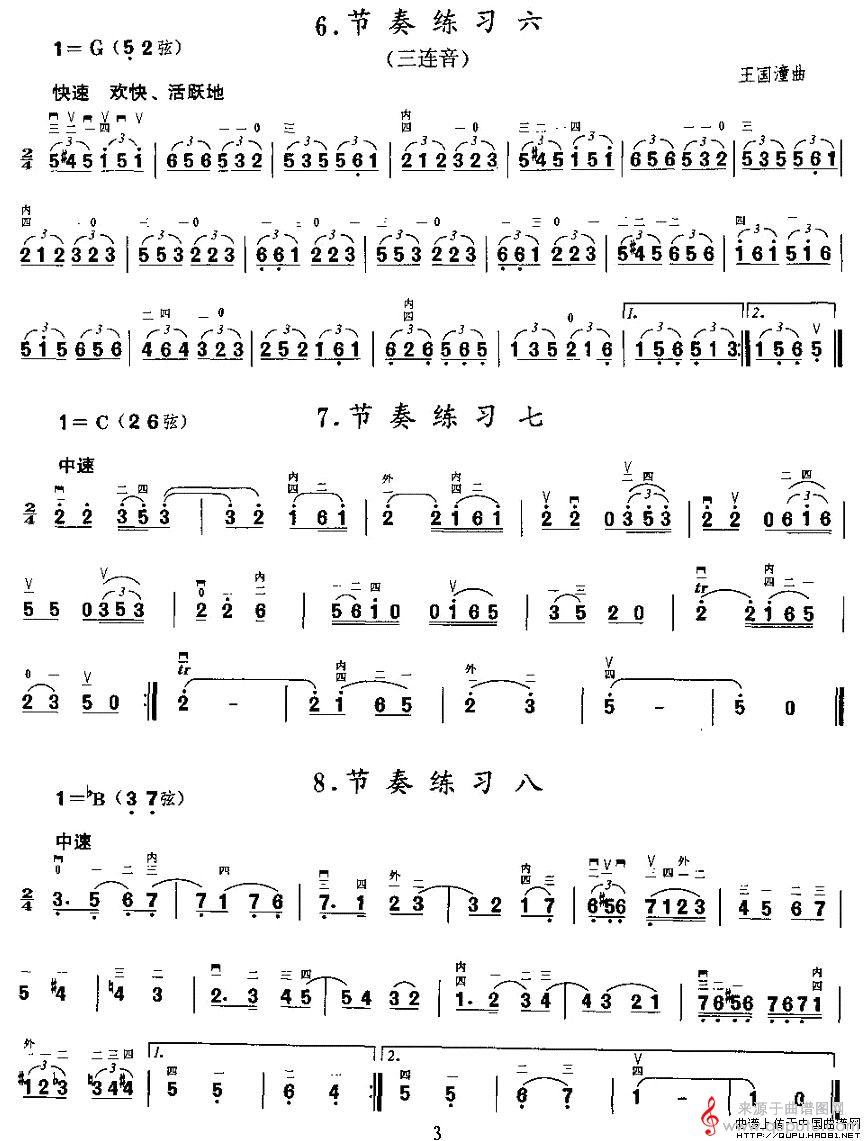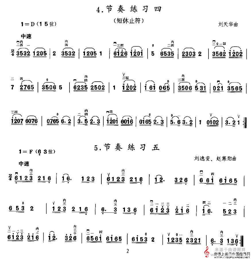 曲谱图网为您提供二胡微型练习曲:节奏练习(胡琴入门教学)找谱子,就上曲谱图网。