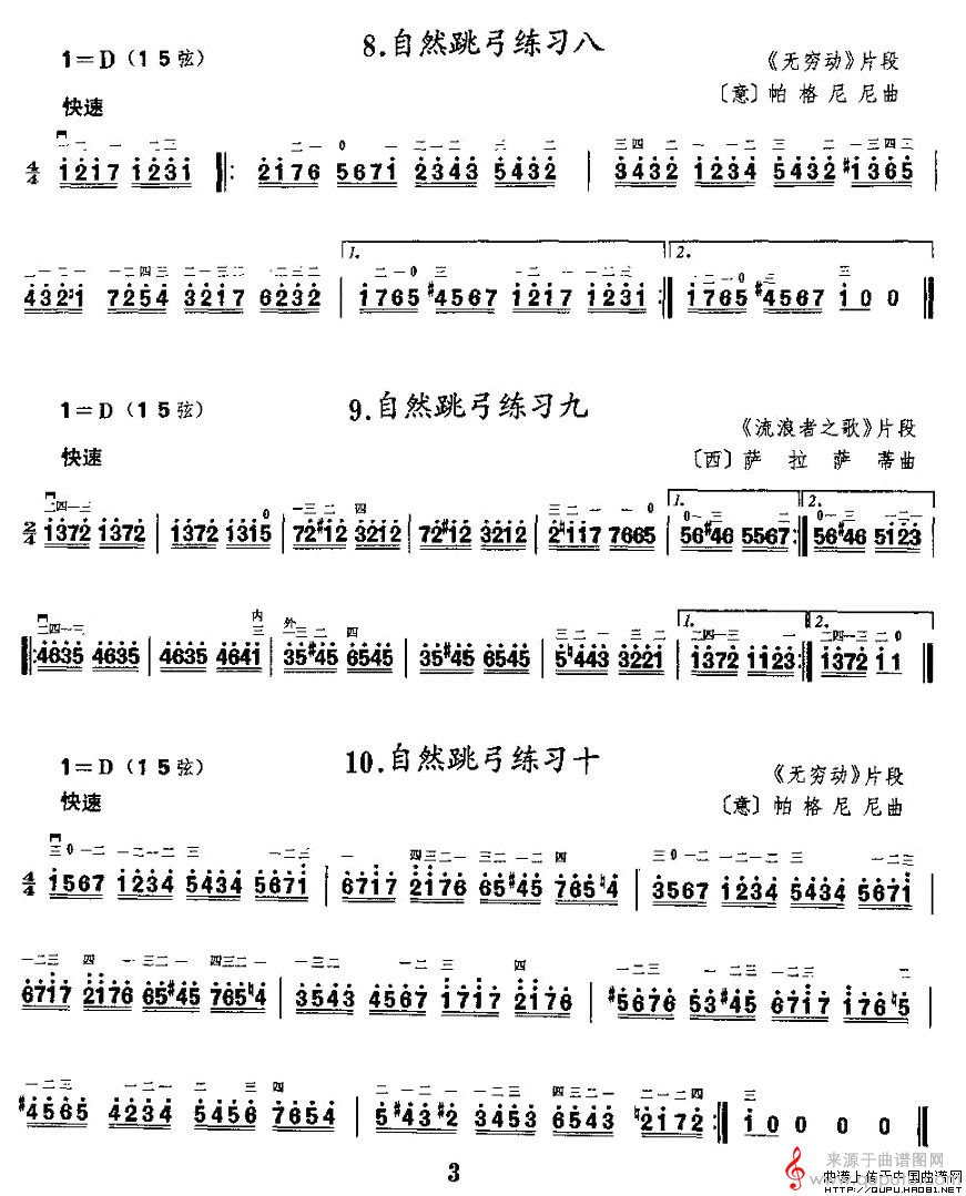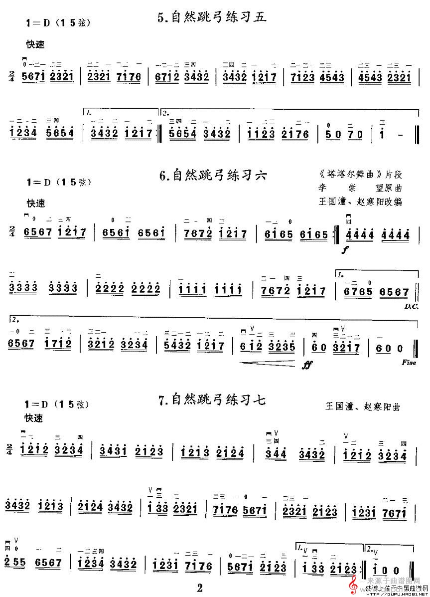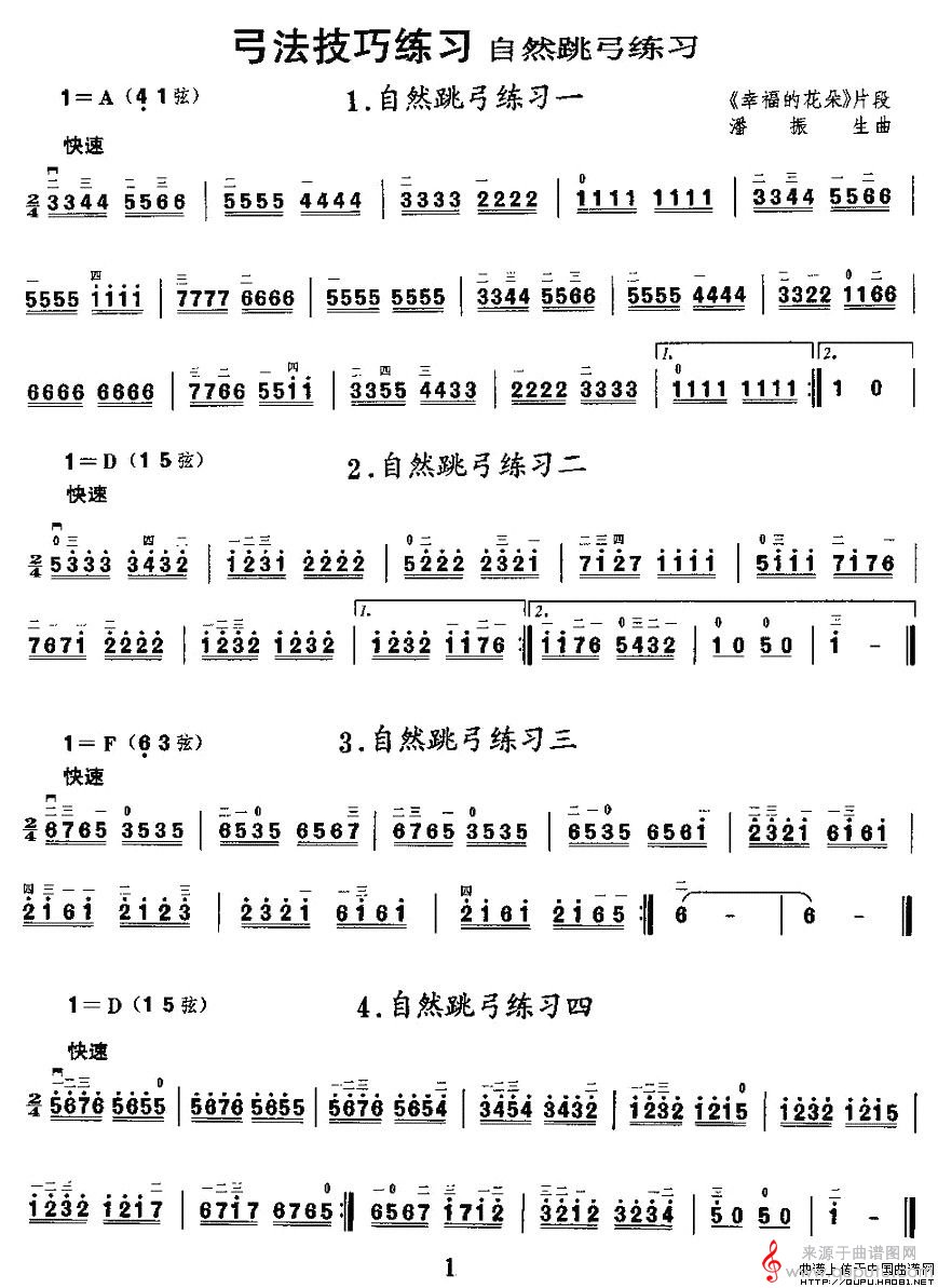 曲谱图网为您提供二胡微型练习曲:自然跳弓练习(胡琴教学)找谱子,就上曲谱图网。