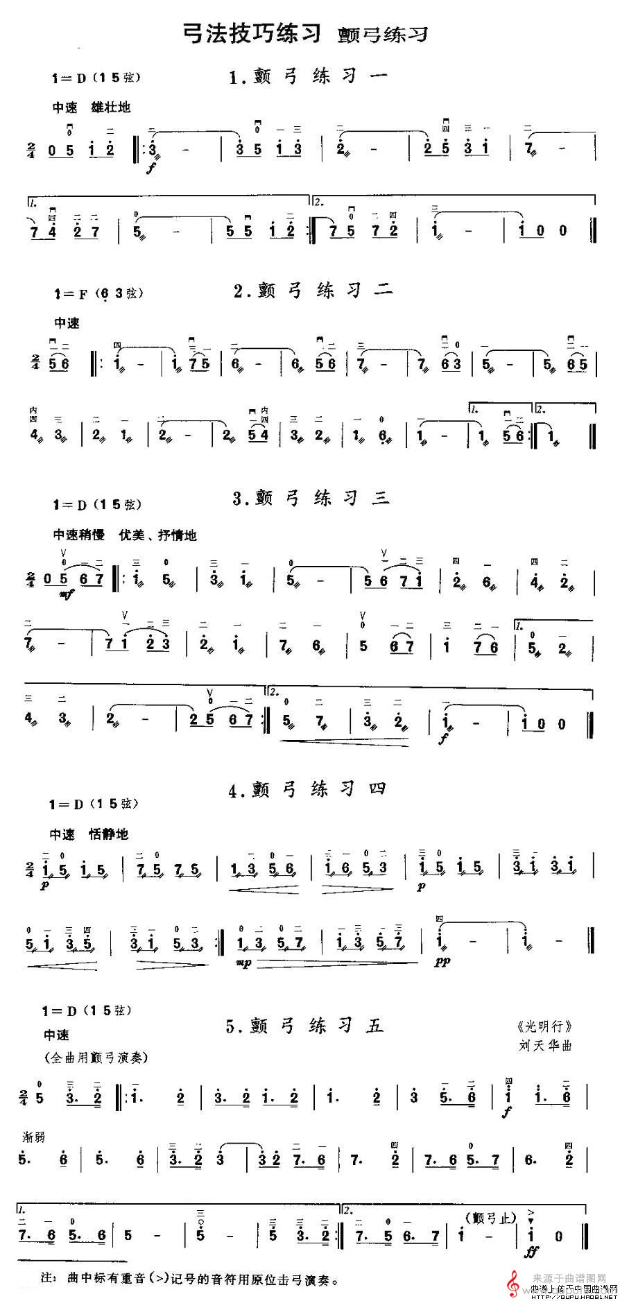 曲谱图网为您提供二胡微型练习曲:颤弓练习(胡琴教学)找谱子,就上曲谱图网。