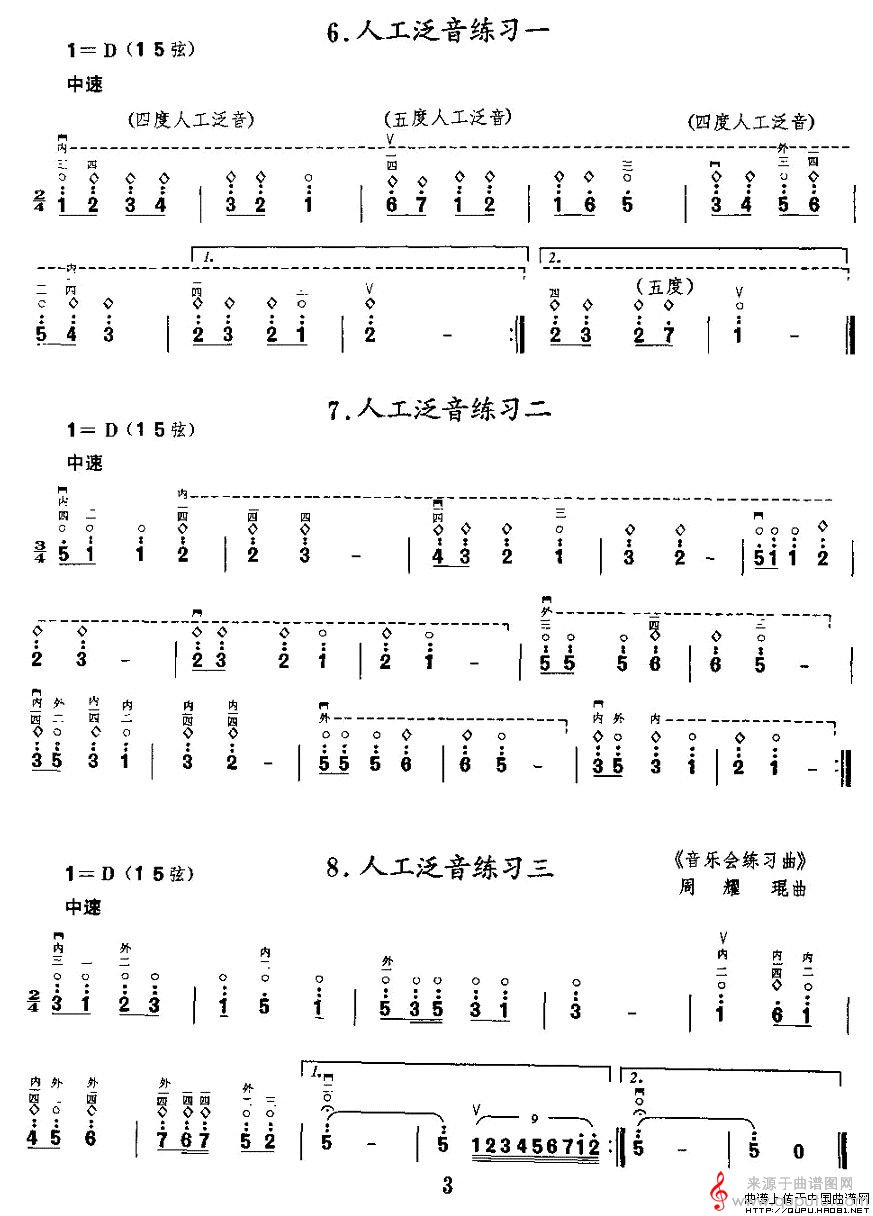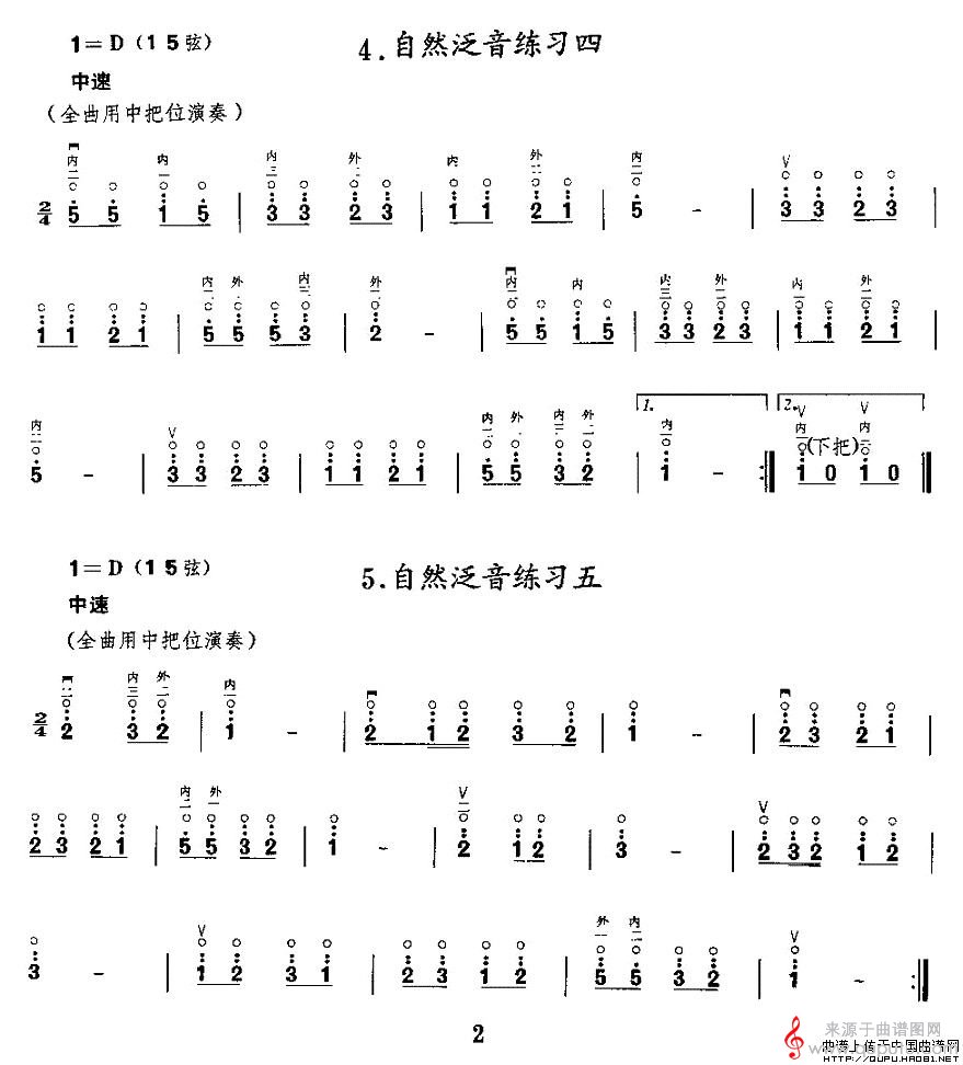 曲谱图网为您提供二胡微型练习曲:泛音练习(二胡微型练习曲:泛音练习简谱教学)找谱子,就上曲谱图网。