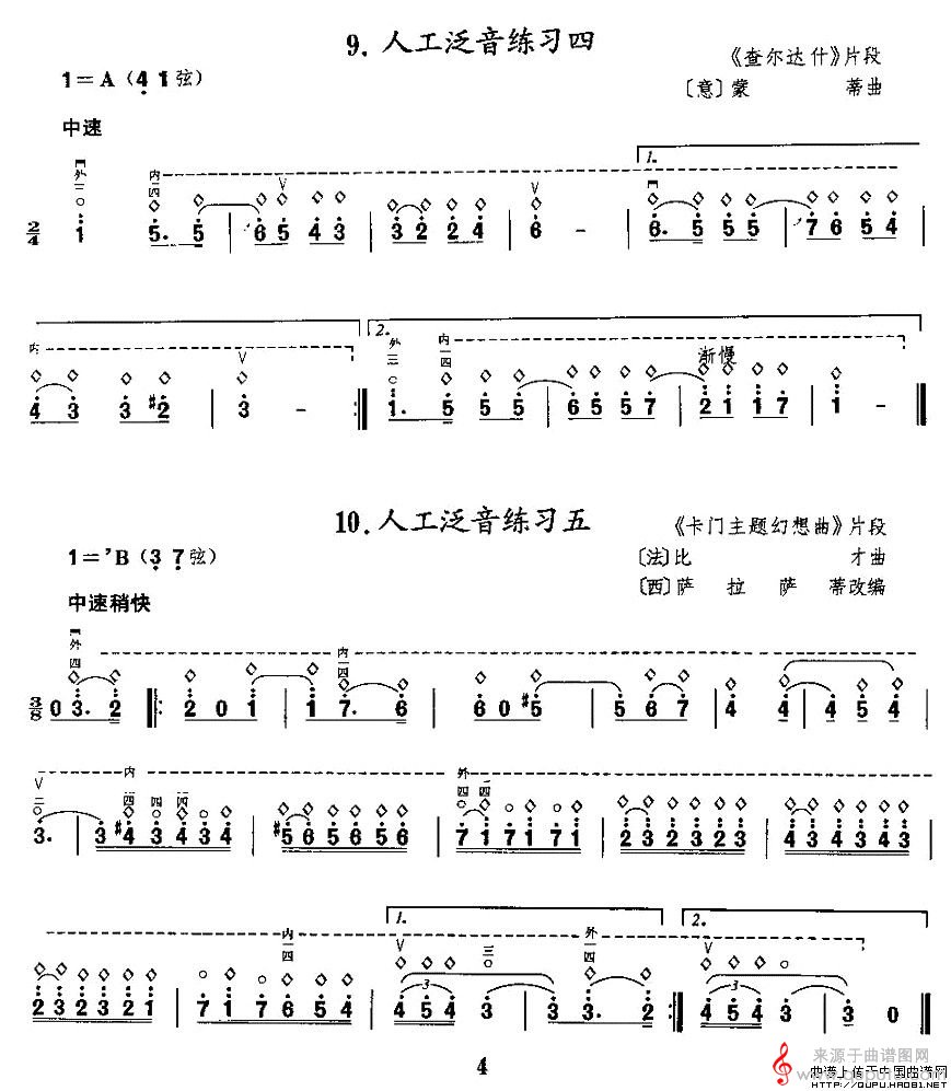 二胡微型练习曲:泛音练习(二胡微型练习曲:泛音练习简谱教学)