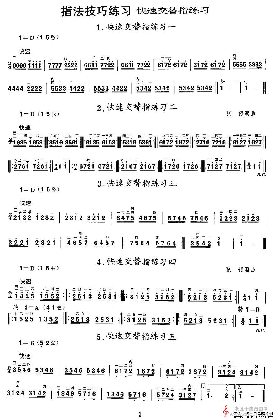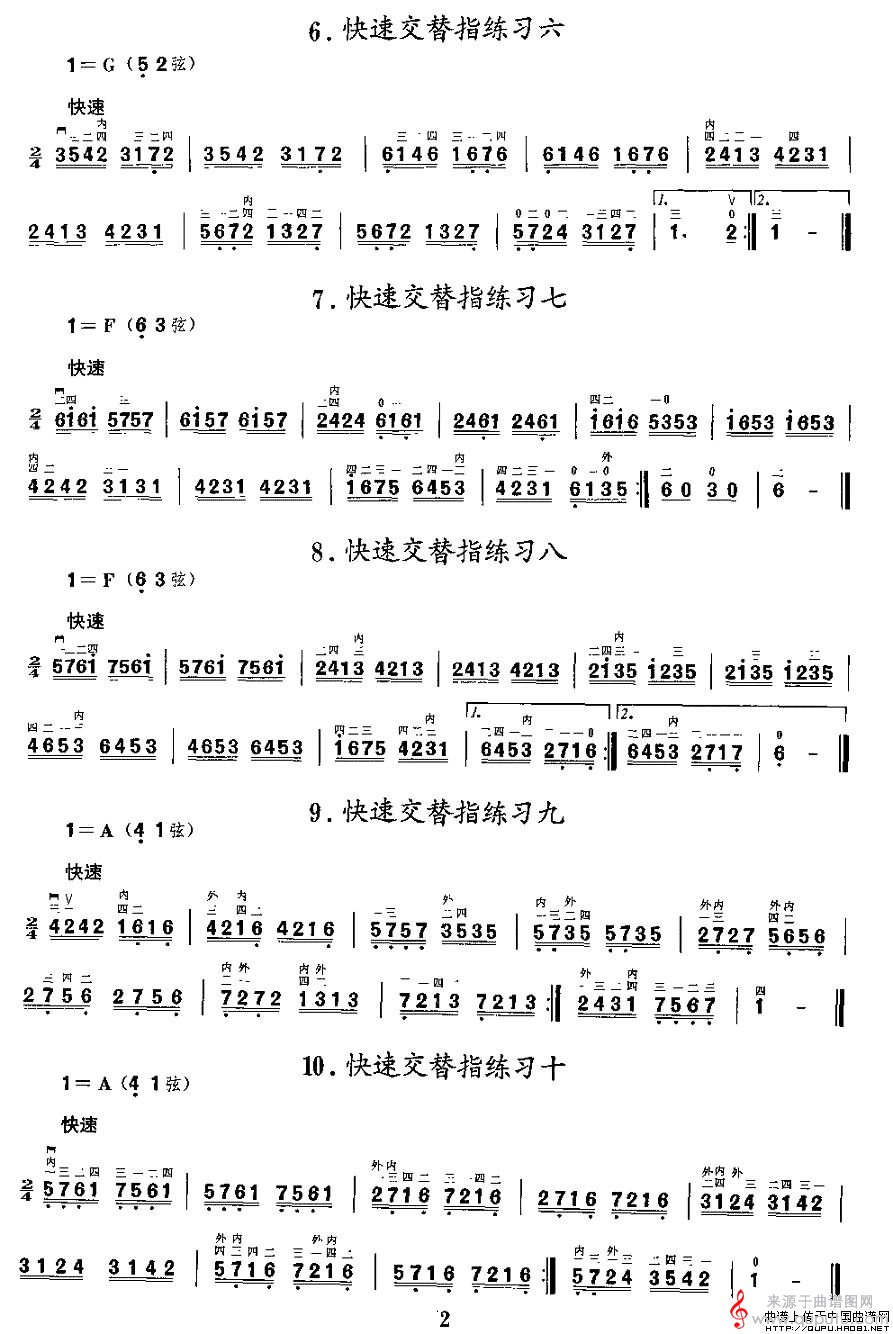 曲谱图网为您提供二胡微型练习曲:快速交替指练习找谱子,就上曲谱图网。