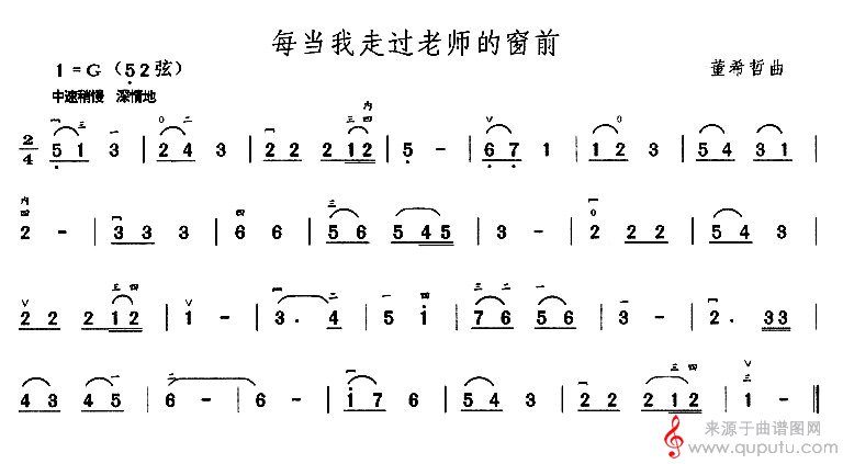 每当我走过老师的窗前(每当我走过老师的窗前原创胡琴谱)
