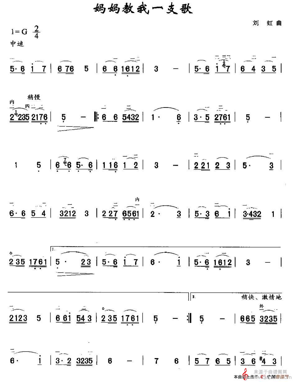 妈妈教我一支歌(妈妈教我一支歌原创胡琴谱简谱)